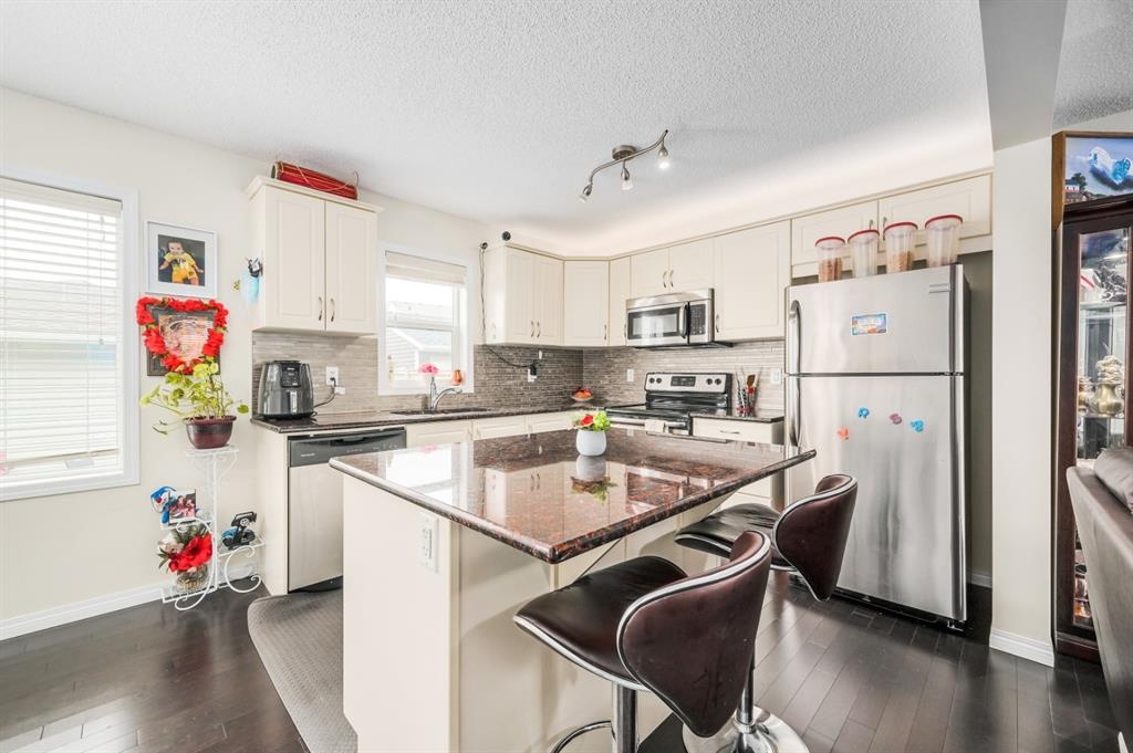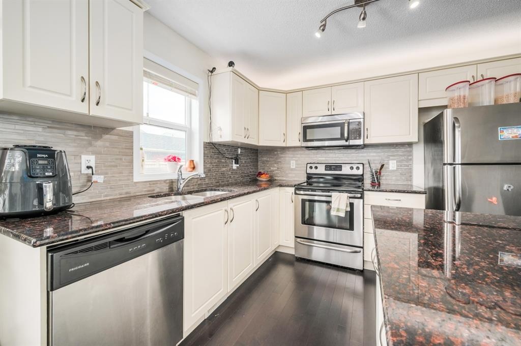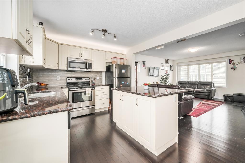 Price reduced. Welcome to this beautiful home in desired community of CITYSCAPE built by award winning builder MATTAMY HOMES. This meticulously cared for 2-storey home with an open floor plan is a great combination of style & details throughout. Pride of ownership is demonstrated throughout. Upon entrance you are greeted by an extra bright family room with gleaming Hardwood floors throughout the main level. Bright, sunny living room flows seamlessly into a gorgeous kitchen featuring tiled backsplash, lots of cabinet space, granite countertops & stainless steel appliances and is placed nicely next to your dining area. Half bathroom and pantry complete this level. Upstairs features a huge master bedroom with a walk in closet. Two additional bedrooms and a 4pc bath complete this level. Basement with two oversized windows and roughed in for the bathroom is unspoiled and ready for future development .The private backyard is nicely fenced and leads to a double detached garage. Great house in amazing community and close to green spaces, shopping, bus stops & other amenities. Ready to move in, Shows great. An ideal property for first time home buyers or investors.
