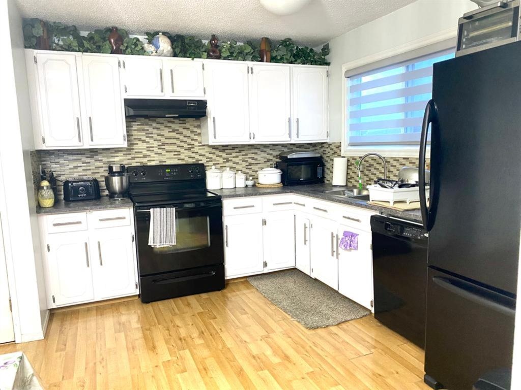 Calling First time home buyers and Investors. This attractive and well-kept 4 level split has been well-maintained, and offers a perfect family environment. Enter into this bright home, with plenty of natural light through large windows and light coloured walls. Well-maintained laminate flooring throughout. The spacious living room flows into the charming, open floor plan, kitchen and dining area. On the upper level, this cozy gem offers two bedrooms and 1 full bathroom with plenty of closet space. The walk-out basement is fully-developed with an illegal suite, showcasing a full kitchen, spacious living room, two bedrooms and one bathroom. The back yard offers a fully-landscaped and private space for kids and pets. New windows in 2018 and Roof replaced in 2017. Was previously rented for $1200 + 60% utilities (upstairs) and $800 + 40% utilities (downstairs)