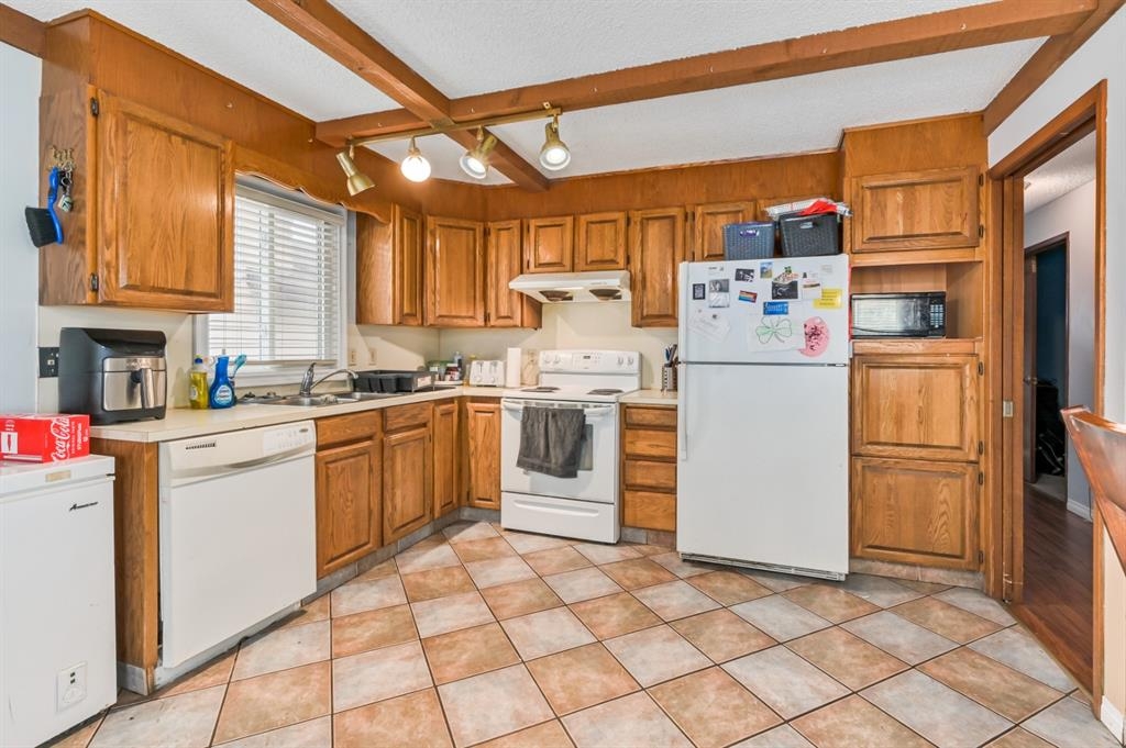 This well-appointed bungalow with a Bright open main floor has it all. On Entrance you are greeted with a spacious living room with ample natural light. A functional Eat in Kitchen leads to a South West facing Deck and large backyard perfect for summer. Three bedrooms with 4pc Bathroom complete this level. The lower level has a large family room with wood burning fireplace, and one good size bedroom. There is another good size room which is being used as an additional/second bedroom. Another 4pc bathroom completes the lower level. Newer Windows and roof. Located on a quiet street with a paved back alley, close to all amenities, schools and shopping