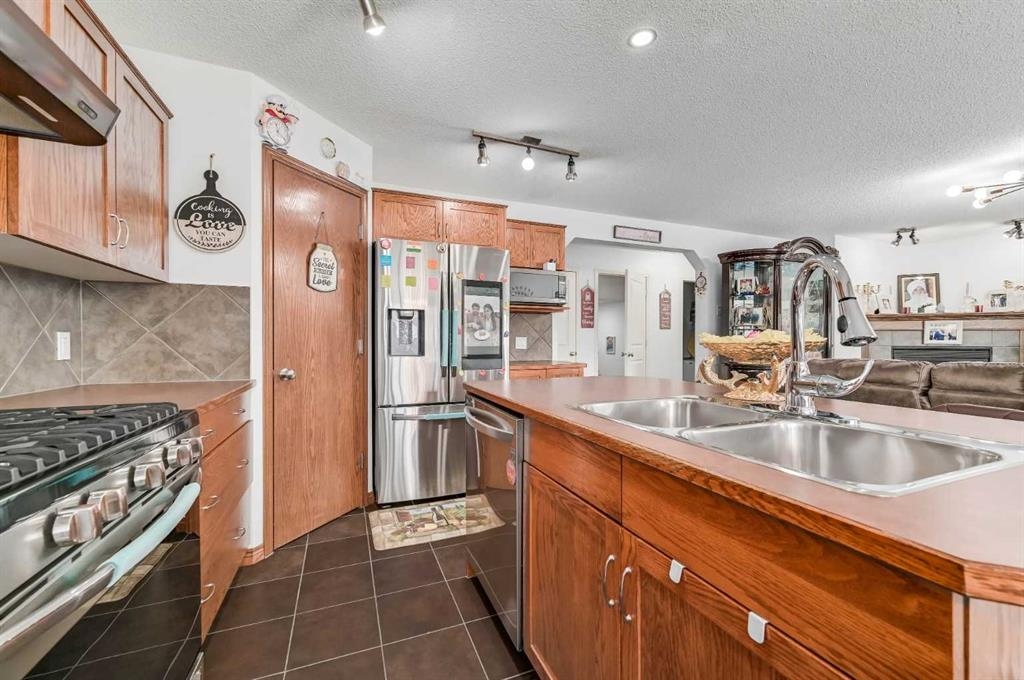 Welcome to this 2 storey air conditioned home boasting over 2600 sq.ft of developed living space. This fully developed home offers a total of 4 bedrooms, 3.5 bathrooms. Main floor includes a beautiful kitchen with island and stainless steel appliances along with bright and spacious living room with a corner gas fireplace. The laundry room completes this level. Upstairs you will be welcomed by a sprawling bonus room wired for sound, large owner's suite with ensuite , 2 good sized bedrooms and 4 piece bath. The lower level completes this home with an additional bedroom, 3 piece bath, and large rec room. The lot features a bright and sunny south facing back yard with a large deck and RV parking. Additional highlights include ample storage spaces, tankless hot water system and a double attached heated garage.