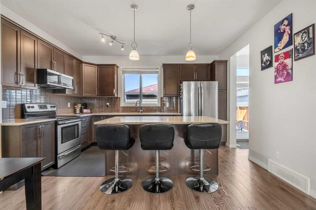 Welcome to 82 Cityscape Terrace, a meticulously maintained, move in ready, spacious 2 story home in the community of City Scape. This home features an open concept main floor with soaring 9' ceilings with upgraded 8' doors and oversized windows bringing in tons of natural light from all sides. Upgrades include wide plank laminate flooring throughout and a well appointed kitchen featuring a massive walk-in pantry, quartz counter tops and beautiful glass tile backsplash. A two piece powder room, family room and dining area complete the main level. Upstairs you will find the primary bedroom with en-suite and walk in closet, plus two more good size bedrooms and second full bath along with a sought after second floor laundry. The basement has been partially finished and is currently being used as a recreation area walls are insulated, drywalled and painted. Additional features include a good sized detached double garage, fully fenced and landscaped backyard with concrete patio. Book your showing today!