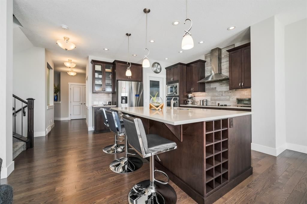 Priced adjusted to SELL . Fully finished, beautiful 2 storey home has a total of 5 bedrooms and backs onto the walking path in charming Nolan Hill. With almost 3500 sqft of developed living space, the home offers a spacious front home office with glass doors, perfect for working from home. Bright and open main floor welcomes you into this home with extensive upgrades throughout, large windows and 9’ ceilings flood the home with natural light, hardwood floors, spacious dining and living room. The kitchen overlooks the breakfast nook and living room, featuring quartz counters, timeless espresso stained solid wood cabinetry, chimney hood fan, eating bar, walk-thru pantry & built-in stainless steel appliances that include an electric cook top, wall oven & French door fridge. Maple railing with iron spindles frames the stairs to the upper level which features an oversized bonus room with vaulted ceilings, perfect for evenings spent with the family, laundry room and 3 bedrooms. The master retreat can easily accommodate king-sized furniture and has a walk-in closet and a huge 5pc ensuite with dual sinks, quartz counters, soaker tub & glass surround shower. The 2 additional bedrooms also have their own walk-in closets with a second 5 pcs bathroom on the upper floor. The professionally developed basement welcomes you with a huge entertainment area with wet bar, 2 additional large bedrooms and full bath. Southwest oversized backyard is an absolute plus for your family to enjoy the sun and those evening bbqs. The easy access to green space/path way from the fenced back yard provides added convenience and is ideal for walks within the community. This home must be seen in person to be appreciated. Minutes away from Sage Hill Plaza and Beacon Hills shopping centre with easy access to Shaganappi, Sarcee and Stoney Trail! A perfect family home. Exceptional value in the community with pride of ownership shown throughout.